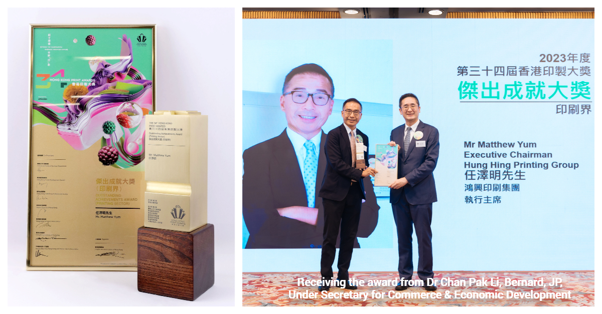 Our executive chairman, Matthew Yum, was honoured with the Outstanding Achievement Award at the 34th Hong Kong Print Awards, recognising his remarkable contributions to the Hong Kong printing industry over the past four decades.